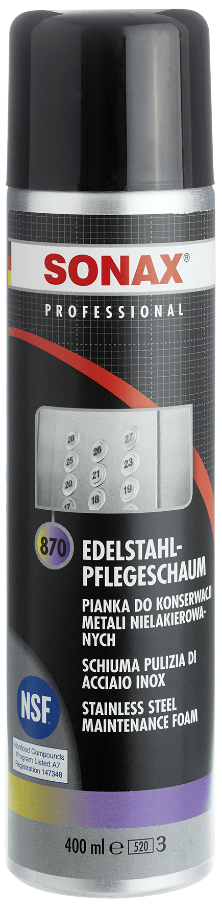 pulidas de acero, cromo y aluminio. Elimina suciedad, películas lubricantes, huellas de dedos y manchas de agua proporcionando un brillo